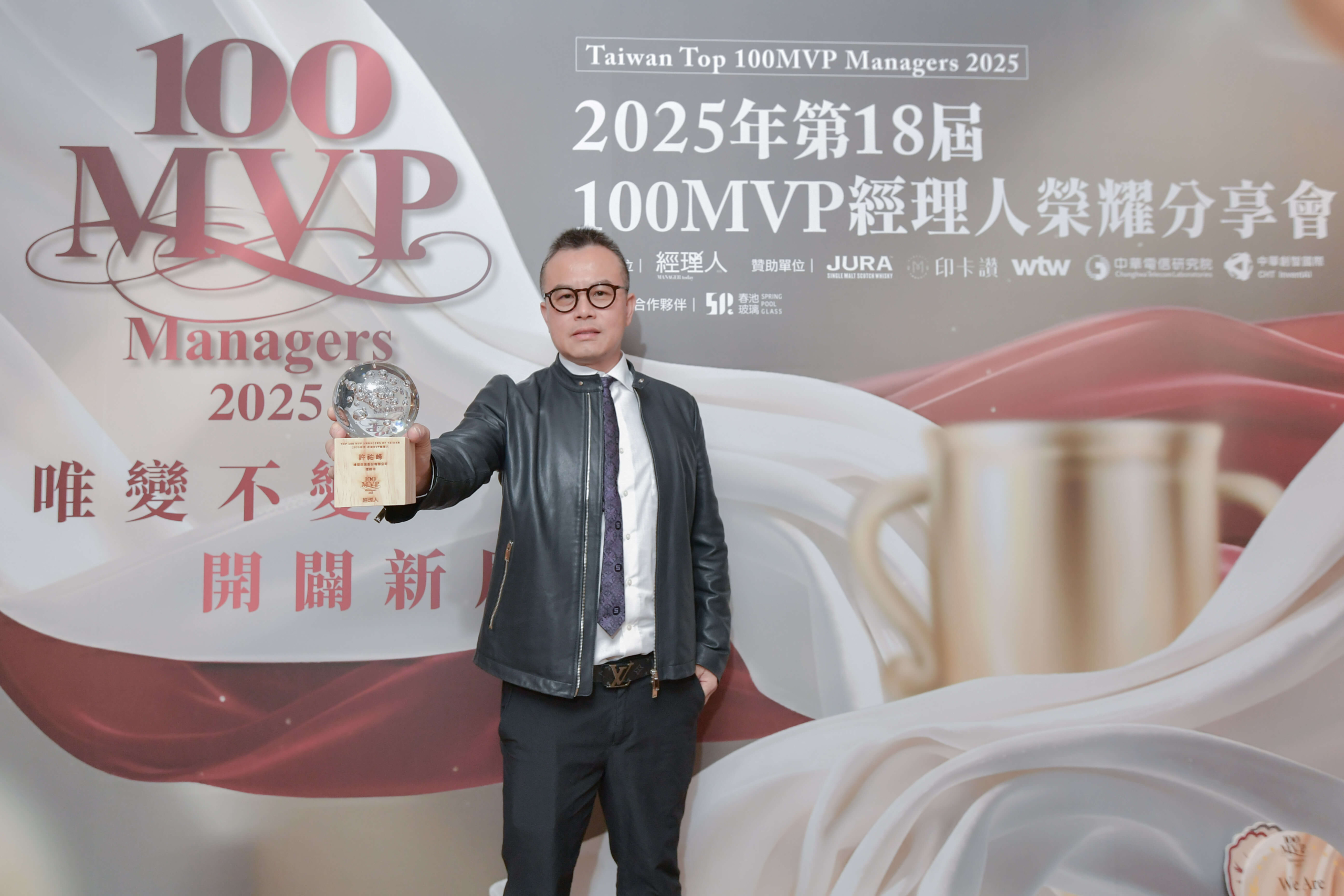 ▲ Yofong Hsu, CEO of GreenValue, received the award and delivered his acceptance speech at the 2025 100 MVP Manager Awards Ceremony, sharing GreenValue’s innovative practices in cold chain engineering, smart energy efficiency, and sustainable technologies.